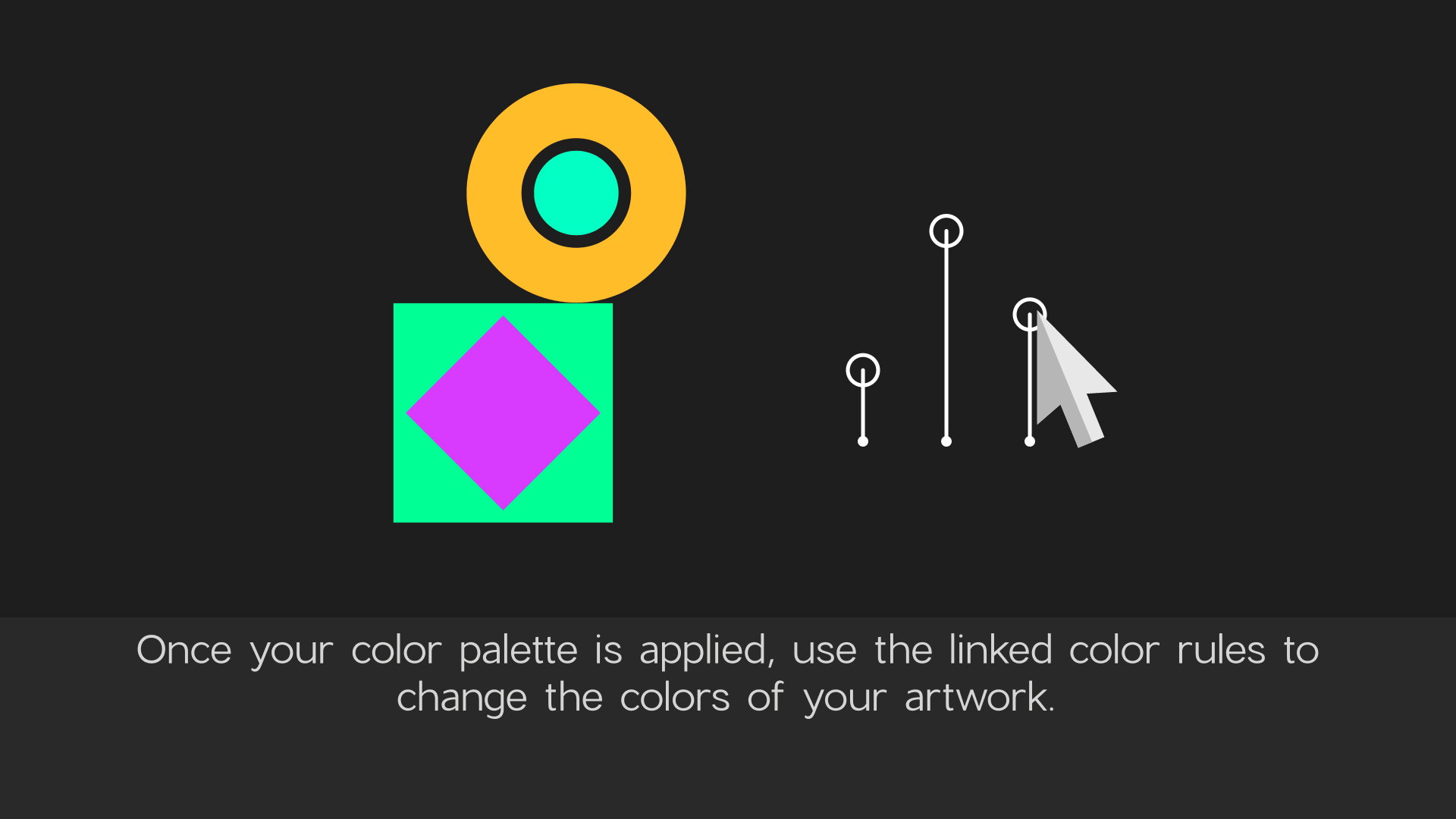 Color Revolver is an Add-on for the After Effects script Ray Dynamic Color* (available at aescripts.com). Easily create a palette of dynamically linked colors using a variety of color rules with more to come. Once your swatches are applied, you can change the colors of all of your artwork using the selected color rule with just a few sliders. The color rules include: